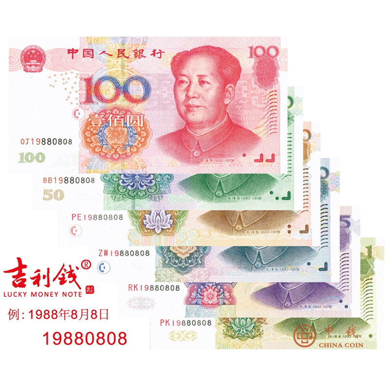 【简介】 任何个人、组织或国家都会有一些重要的纪念日,这天也许是生日、结婚日,也许是成立或开业纪念日…… 吉利钱珍藏册内纸币所印号码可与这些日期完全相同,比如某人的生日是2008年8月8日,那么吉利钱纸币的号码就是20080808。 该套珍藏册中的纸币均为中国人民银行统一印制发行的国家法定货币,具有可流通可兑换的法定属性,纸币上的号码是印制过程中自然产生的流水号码,在所有收藏品中具有最高的权威性。 祝愿吉利钱珍藏册为收藏者带来吉祥和幸福! 【吉利钱的六大特点】 1、稀缺。号码能与特定日期相符的纸币非常稀缺,一亿张中只能出现一张,如果整套六张纸币全是这一号码,收集起来更是难上加难。吉利钱纸币得来不易,需要很好的财运才能拥有。 2、紧迫。第五套人民币的数字号码正从8位过渡到7位,现在1元和100元已经是7位数字号码,其余面额的数字号码正在向7位过渡,吉利钱纸币今后或将不再出现!我国同一天出生的人口有5万左右,同一天注册的企业有上万家,加上99.9%以上的钞票已经进入流通领域被消耗掉了,保留下来的吉利钱纸币堪称“凤毛麟角”,一旦错过必将无法弥补,留下终生遗憾! 3、适用。整套吉利钱纸币总面额仅有186元,是一份任何人都可以接受的特殊礼品。具有广阔的适用范围,可以赠送领导、同事、师长、亲朋、恋人……可以使用在生日、结婚、开业、出生、任命等众多场合,甚至还可以用来“炫富”——炫一下专属于我,我有人无的独特财富。 4、专属。由于吉利钱纸币上的号码与某人或组织的重要纪念日完全相同,使得这些纸币对某人或组织具有了特别的意义和专属性,成为一份让人能够真切感受到赠送人的用心良苦而无法拒绝的珍贵礼物。 5、权威。第五套人民币是中国人民银行统一印制发行的国家法定货币,具有可流通可兑换的法定属性,纸币上的号码是印制过程中自然产生的流水号码,在所有收藏品中具有最高的权威性。 6、祥瑞。钞票本身代表着财富,能得到这样一套“可遇而不可求”又和自己紧密相关的吉利钱纸币,预示着财富、好运今后相伴! 【质量保证】 本公司所有吉利钱保证为全新真钞,可以拿到中国银行去鉴定。 【温馨提示】 我司正版“吉利钱”藏品的收藏证书采用印钞专用技术生产,应用以下六项专业防伪技术: 1、水印纸。吉利钱证书采用黑白水印纸印制,对光可见清晰的风车形立体图案。 2、开窗式全息安全线。吉利钱证书采用开窗式金属安全线,安全线间隔地埋入纸中,部分显露在纸张表面,线上有清晰的全息风车图案。 3、微缩文字。吉利钱证书正面“发行证书”外环红色线条为 “LUCKY”字样微缩文字,左下方菱形图案内横线为 “CHINA COIN”字样微缩文字,在放大镜下字体清晰可见。 4、光变油墨。证书正面“吉利钱”、“LUCKY MONEY NOTE”文字采用光变油墨印刷,颜色随视觉角度变化,由红色变成绿色。 5、有色荧光数字编号。吉利钱证书编号在紫外光下会发出明亮的红色荧光。 6、无色荧光图案。吉利钱证书背面中间,在紫外光下可见代表“五福”的五只口衔方孔钱和寿桃的蝙蝠围绕中文“吉”字组成的图案,呈绿金色。 收藏证书同时具备以上6项防伪特征的藏品方为正品“吉利钱”。敬请收藏者注意,避免买到假冒商品和伪钞。 |
